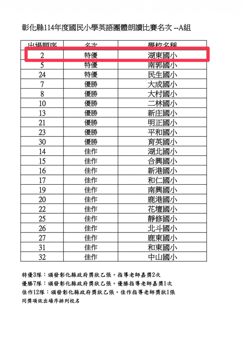 #英語團體朗讀比賽 #榮獲特優 #教育成果 #團隊榮耀 #感謝師長 #專業指導#湖東BEST