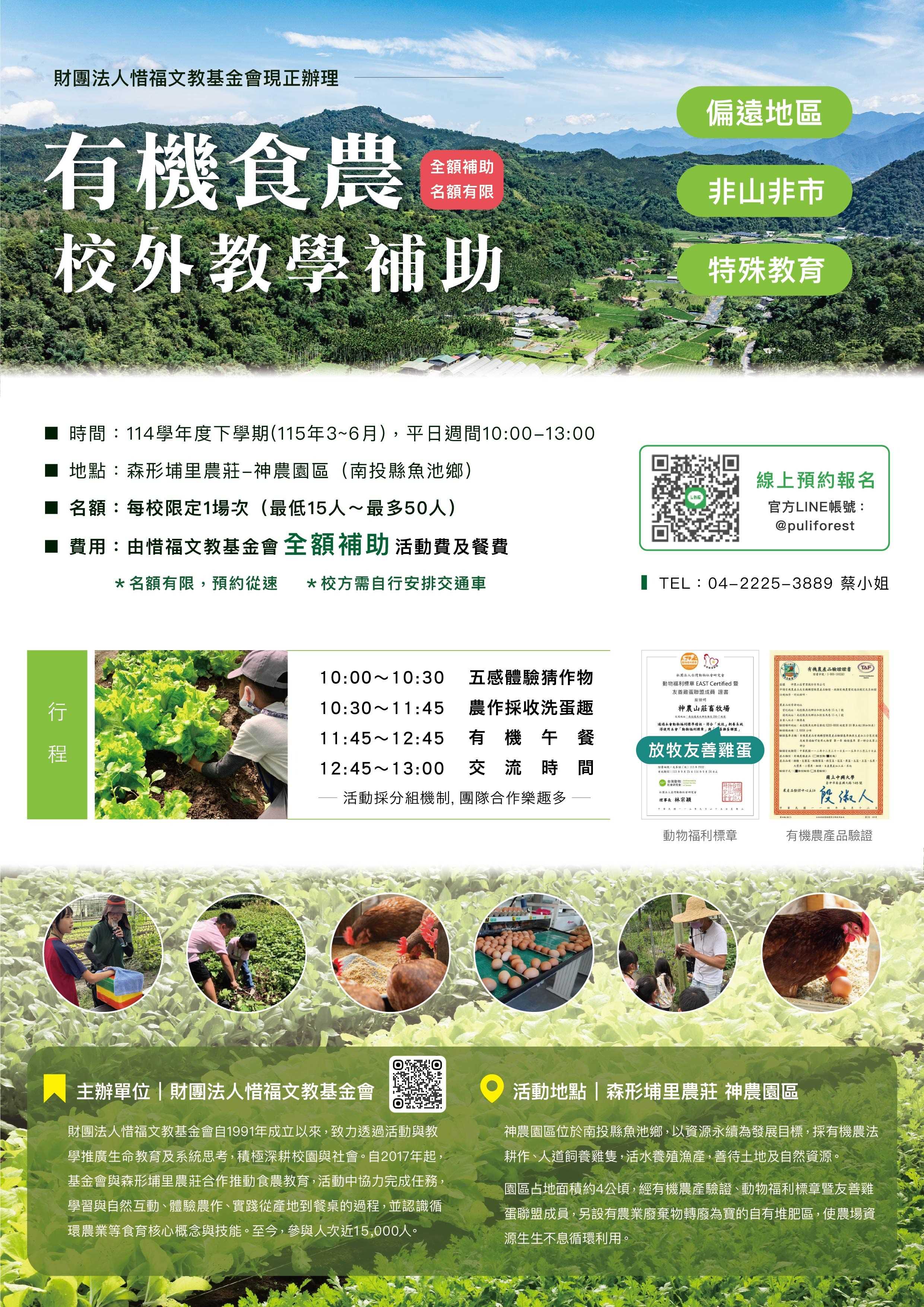 轉知:「有機食農-校外教學補助」計畫